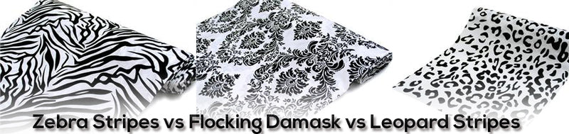Zebra Stripes Fabric Bolt vs Leopard Spots fabric bolt vs Flocking Damask Fabric Bolt