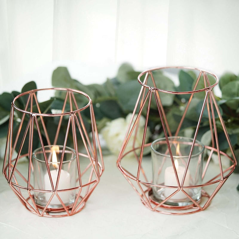 If you’re through with those multi-armed candelabra and massive candle holders, which are common to winter and fall setups, our geometric wired candle holders will become a perfect fit for your next table setup. Crafted from copper wire with utmost intricacy and craftsmanship, they are in rose gold shade – one of the reasons why these recently arrived pieces are already extremely popular with our customers (yeah, rose gold are still on the top of the charts and won’t lose its ground in the nearest future!).