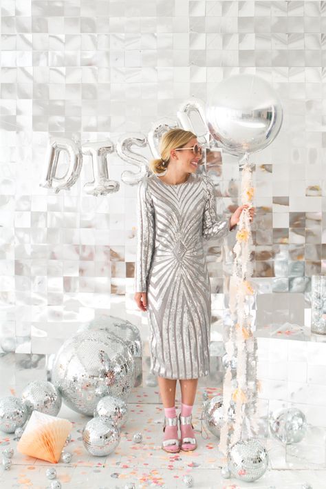 Looking to assemble a stunning photo backdrop? When it comes to disco events, you shouldn’t look any further than our peel-and-stick mirror tiles. Featuring small mirror tiles, which are seamlessly attached to the flexible surface, these easy-to-install panels can reflect lights and shades no worse than a disco ball. To a assemble a disco-inspired backdrop, first up, you’ll need to cover the backdrop area with these tiles. After that, using our silver foil balloons, spell out a signage, and scatter several mirror disco balls of different sizes.